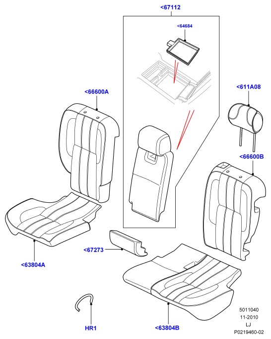 | ВАЛИК ПОДУШКИ ЗАДНЕГО СИДЕНЬЯ; KINGFISHER/JET | 1 | LR017818 | ||||
