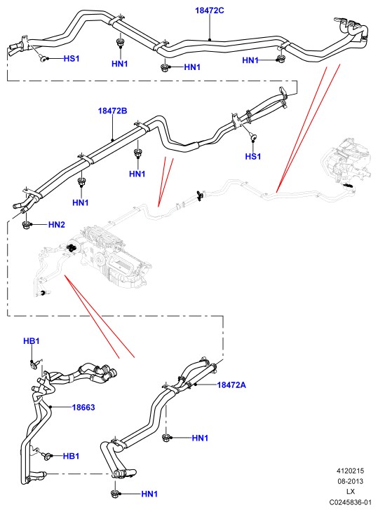ВОДЯНОЙ ТРУБОПРОВОД ОТОПИТЕЛЯ К СЕРДЦЕВИНЕ ОТОПИТЕЛЯ | 1 | LR034610 ↳LR057693 | ||||