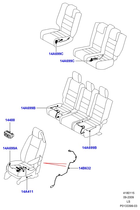 | 14A699C | ПРОВОД 2-Й РЯД; С 5 СИДЕНЬЯМИ С ЗАДН.СИДЕНЬЕМ С РАЗДЕЛ. 65/35 С ОБОГРЕВОМ ЗАДНИХ СИДЕНИЙ | (V)6A000001 | | 1 | € 35 | YML500840 |